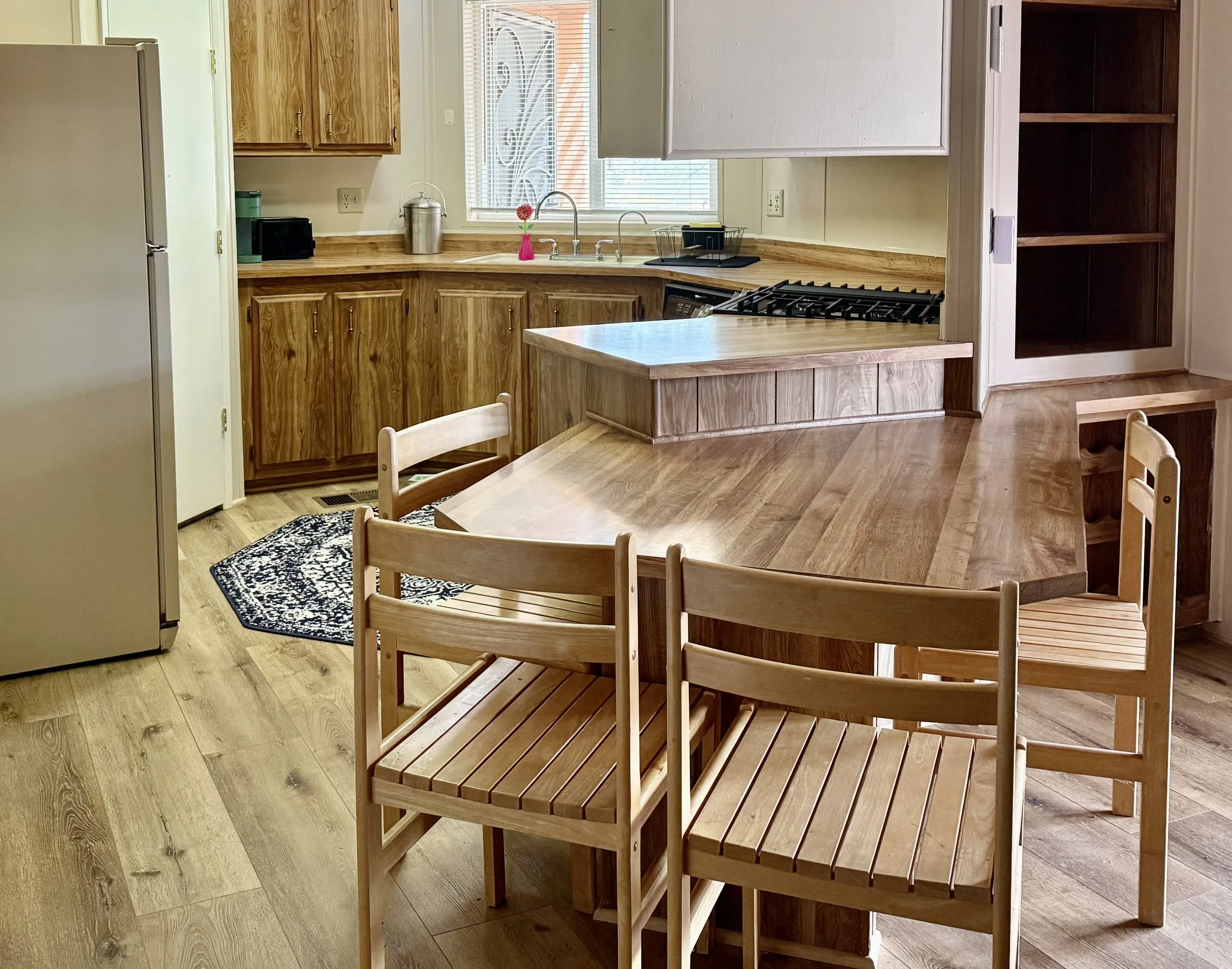 The Chakra house has a full kitchen, 3 small refrigerators, a dining room table for 12 people, washer & dryer, heat, and air-conditioning. The Chakra house is perfect for a family with children, a group of friends or workshop as the living room can easily be configured into a classroom.